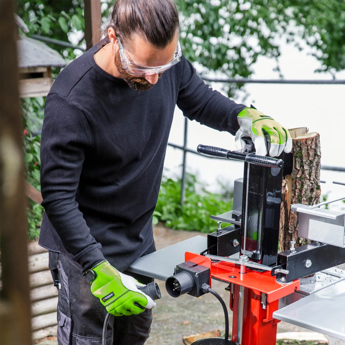 Despite the two-hand safety controls and the associated risk reduction, we recommend that you wear safety shoes, safety glasses and gloves when operating the splitter. When operating, make sure to place the log splitter on a firm, straight surface.