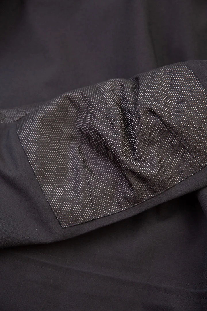 - • Reinforced patches on the shoulders, elbows and forearms, made from a super robust and flexible hexagonal patterned fabric.