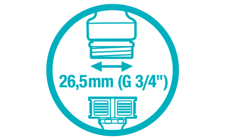 - Use – Suitable for taps with 26,5mm (G 3/4″) taps and13 mm (1/2″) and 15 mm (5/8”) hoses