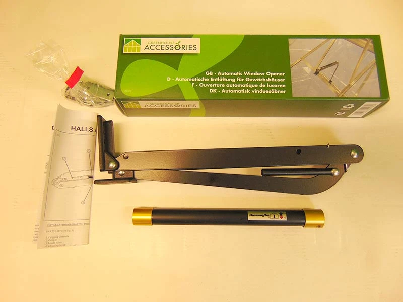 - The Halls Autovent opener simply clamps onto the greenhouse frame and to the vent, making it easy to remove in Winter.