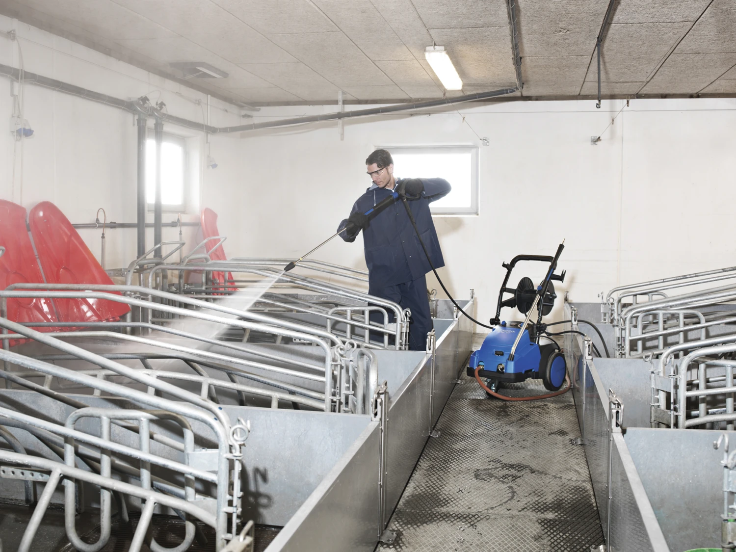 The MC 5M line is intuitive and easy to use, it offers excellent storage facilities for the pressure washer’s standard spray equipment. The electrical cable can be quickly wound around the storage hooks and the lower cable hook rotates to facilitate swift cable removal. The robust optional hose reel makes storage of the hose simple and also protects the hose from damage. Space is available for the storage of two lances in the lance holders that firmly grip the lances to prevent them from falling out during transport. The handle can be folded down to reduce space requirements when storing or transporting the unit, furthermore, the handle can be placed in a central position, with optimal balance for use with a crane lifting strap.