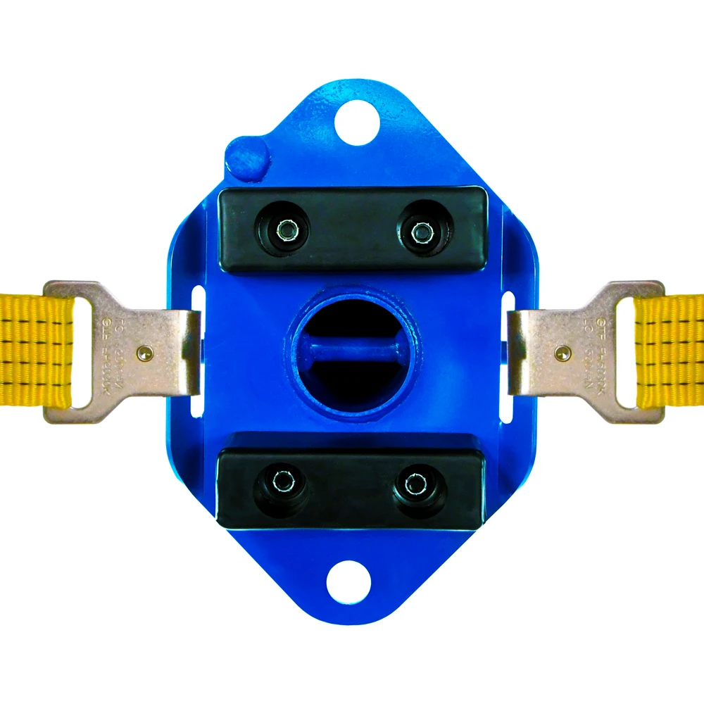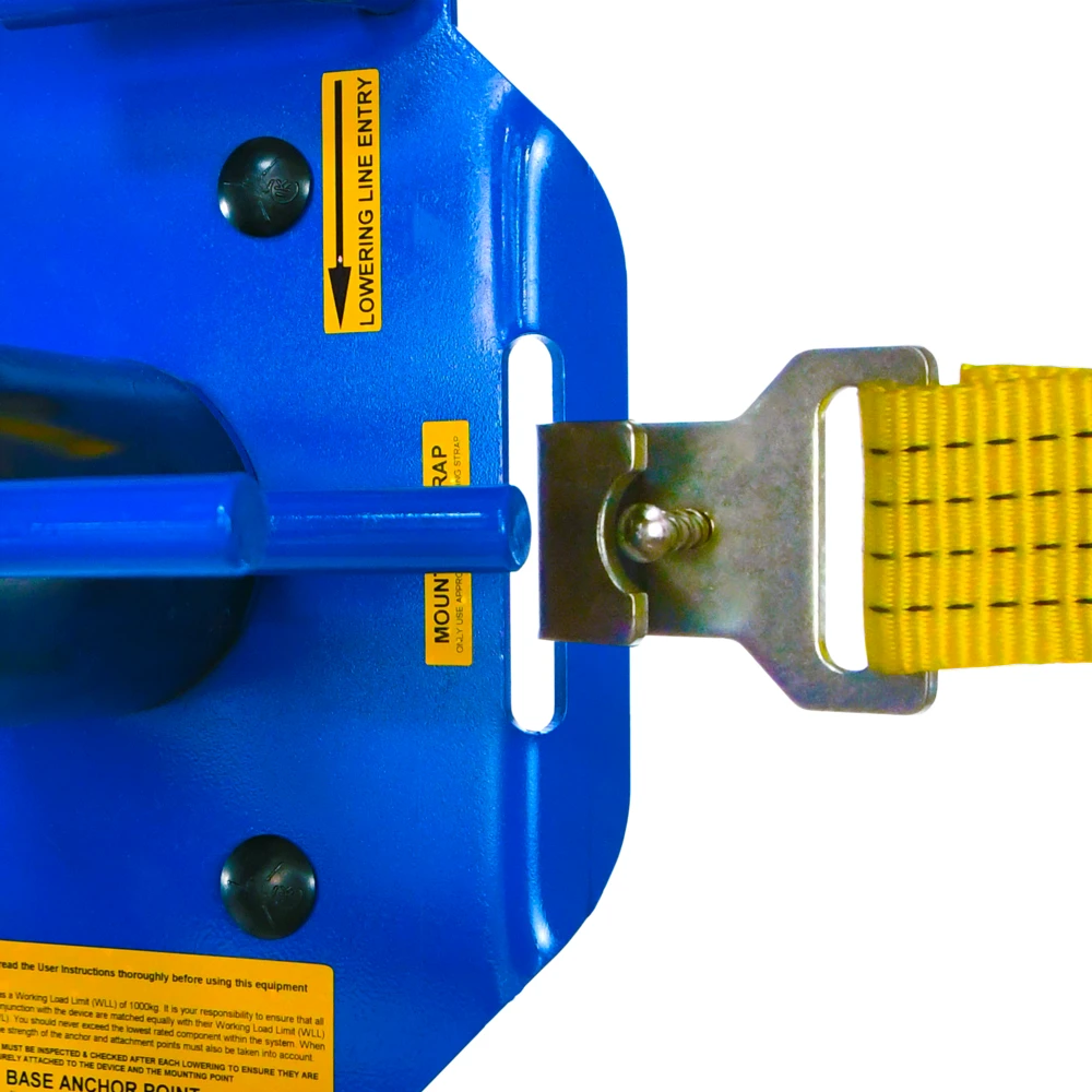 Supplied with a specially designed ratchet strap fitted with Carbon Steel hooks with Keeper Pins to prevent the mounting hooks from detaching from the device when not under tension. The webbing is made from a high tenacity 50mm wide polyester yarn and is UV resistant with a 6000kg breaking strength.